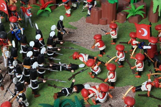 Η έκθεση αποτελεί πρωτότυπη προσέγγιση όλων όσων διαδραματίστηκαν, από τους προεπαναστατικούς χρόνους μέχρι και την ίδρυση του νεοελληνικού κράτους. Μικρόσωμες πολύχρωμες φιγούρες PLAYMOBIL «συνθέτουν» πεδία μαχών, αναπαριστούν ιστορικά γεγονότα, περιγράφουν σκηνές καθημερινότητας, απεικονίζουν σημαίνουσες μορφές του Αγώνα.