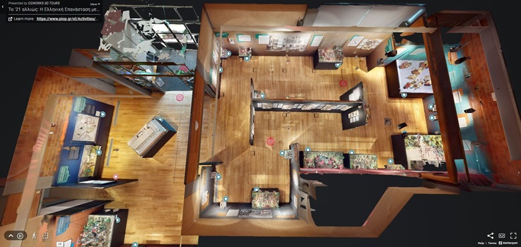 Μέσω της εικονικής περιήγησης που παρουσιάζει το Πολιτιστικό Ίδρυμα Ομίλου Πειραιώς, αντλούμε πληροφορίες για σημαντικά γεγονότα της Επανάστασης όπως είναι ο Όρκος των Φιλικών, η Άλωση της Τριπολιτσάς, η Έξοδος του Μεσολογγίου, η Φυγή των Παργινών. Επίσης, γνωρίζουμε πρωταγωνιστές της εποχής, Έλληνες, Φιλέλληνες και Οθωμανούς, άντρες και γυναίκες που έπαιξαν σημαντικό ρόλο στην εξέλιξη των γεγονότων. Τέλος, το συνοδευτικό εκπαιδευτικό φυλλάδιο της έκθεσης εμπλουτίζει με ευχάριστο και δημιουργικό τρόπο, για μικρούς και μεγάλους, αυτό το διαφορετικό ταξίδι στην Ιστορία.