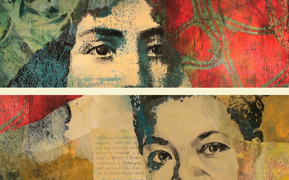Οι διαστάσεις των έργων κυμαίνονται στα 40x60εκ, σε χαρτί και συνδυάζουν τεχνικές όπως μονοτυπία, κολλάζ και ζωγραφική.