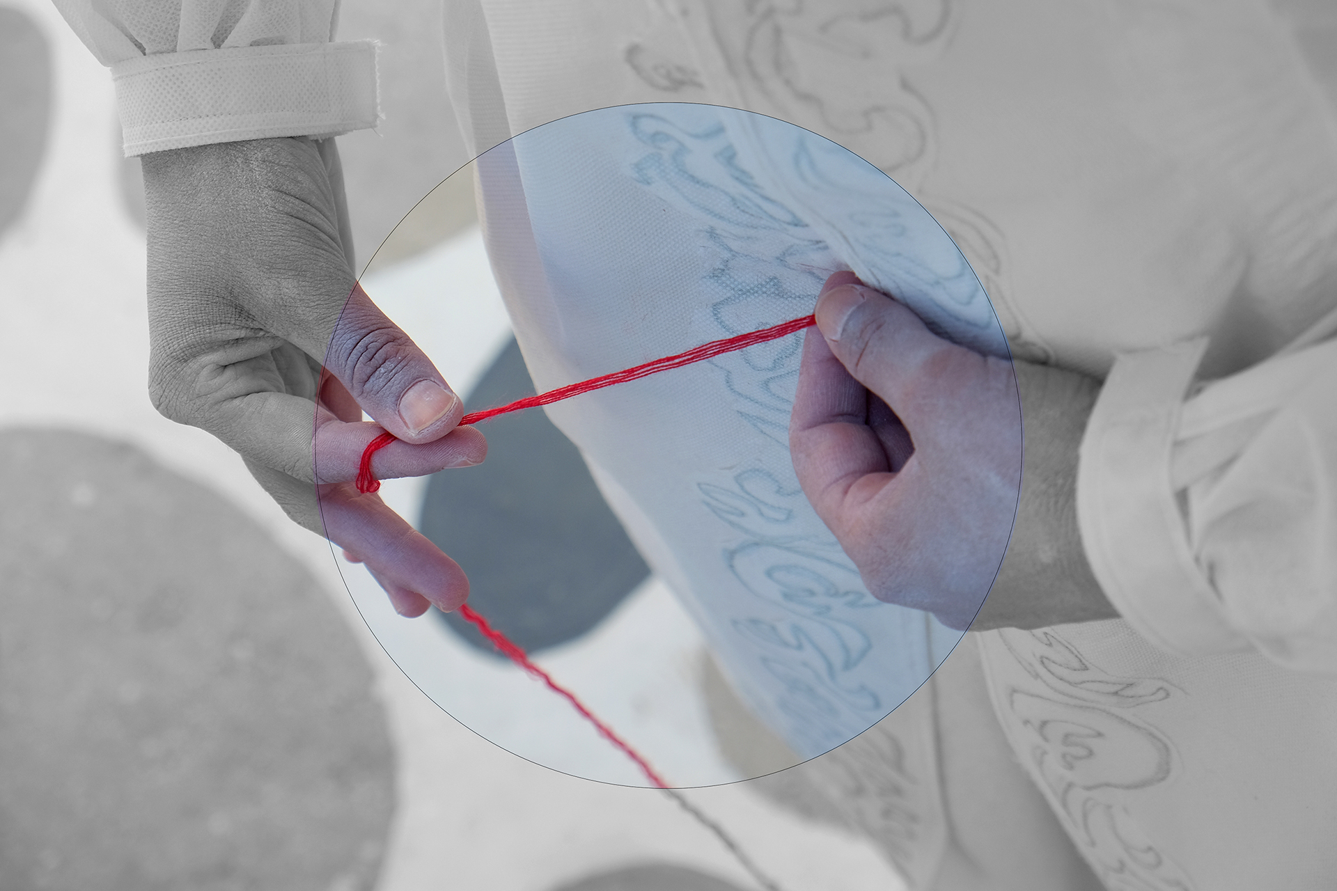 Με σημείο εκκίνησης μια λιθογραφία του Adam Friedel, η εικαστικός Ειρήνη Τσιράκη δημιουργεί έργα στα οποία ξεδιπλώνει πτυχές της προσωπικότητας της ηρωίδας, συνδυάζοντας τη ζωγραφική, τη μονοτυπία και το κολλάζ. Η Μαντώ συναντά σημαντικές γυναίκες και συνδιαλέγεται μαζί τους, αναπτύσσοντας μια σχέση διαχρονική ανταλλαγής ιδεών και αξιών. Το νήμα από την performance της Φρόσως Ζαγοραίου λειτουργεί ως συνδετικός κρίκος, διεισδύει στην πολυπλοκότητα των ζωγραφικών έργων και τα συσχετίζει μορφολογικά και εννοιολογικά με αυτή. Η performance έχει βιντεοσκοπηθεί και προβάλλεται στο πλαίσιο της εγκατάστασης ως video art - ντοκουμέντο.